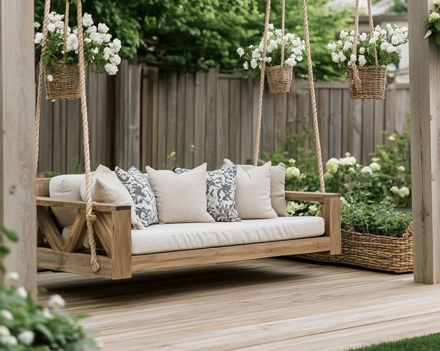 Сейчас мы уже готовы похвастаться большим спектром работ в наших материалах: подушки для садовой мебели и лежаков, качели, беседки, портьеры на террасах, оформление пляжных зон и зон у бассейна, а также многое другое.